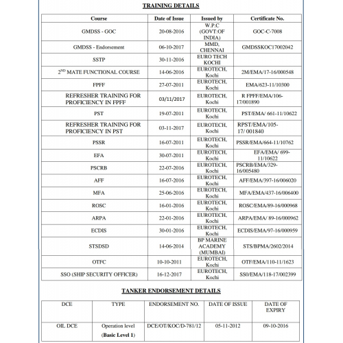 Done cadetship on general cargo & bulk carrier / grain carrier vessel