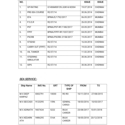 Experienced oiler worked on general cargo, bulk carrier & Roro vessels.